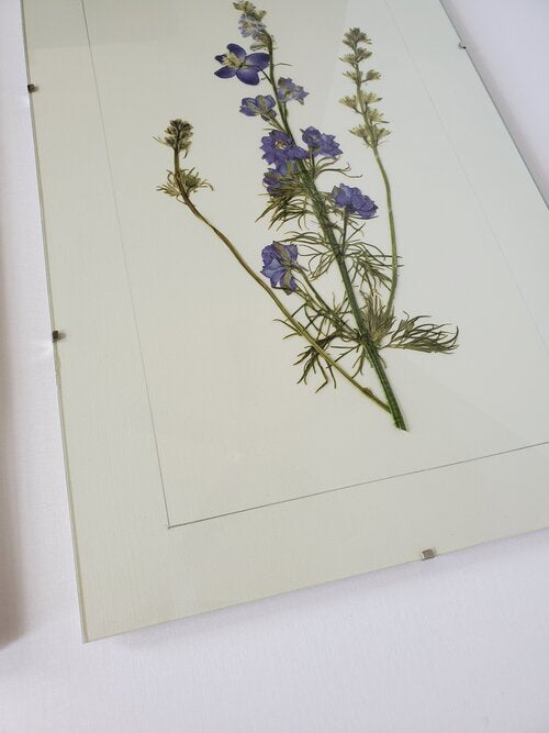 Framed herbarium boards in our minimalist frame – each one unique – display the organic beauty and haunting visual effects that genuine preserved botanical specimens provide.
