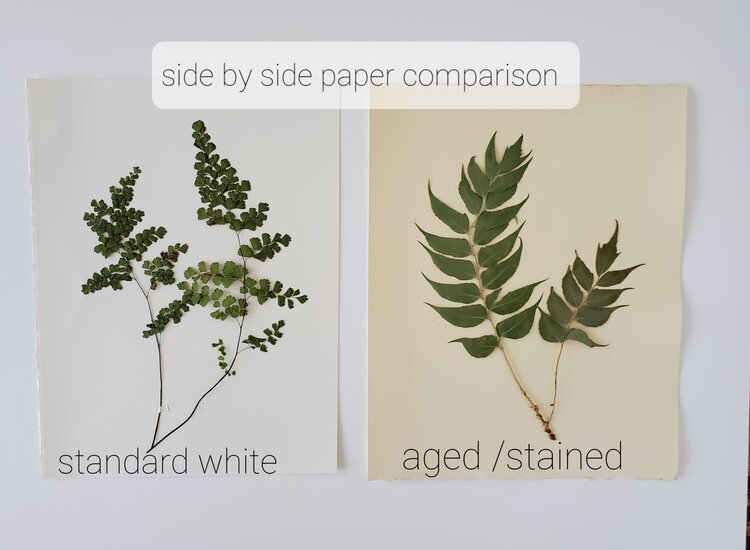 - Botanical is pressed by hand for 6-12 weeks and mounted onto natural linen or rag paper